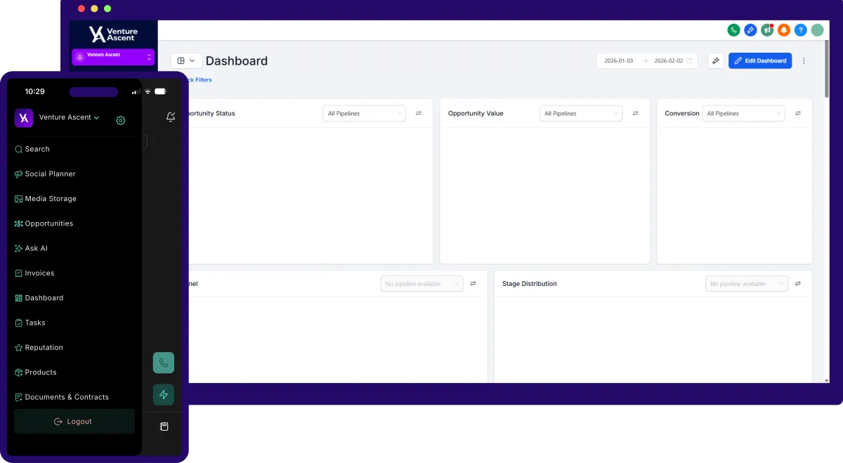 Manage leads, clients, increase retention, and optimize your sales/marketing with Venture Ascent.